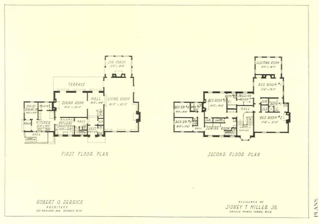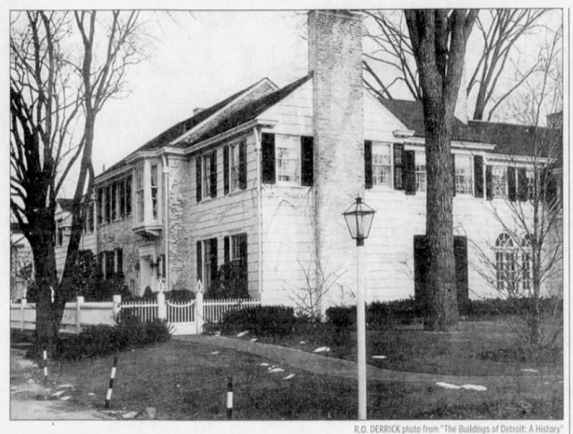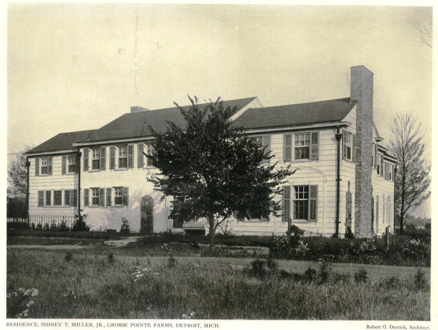 248 Provencal was completed in 1925, designed by Robert O. Derrick during Derrick’s partnership at the firm of Brown, Preston & Derrick, and built by the firm of Wilson & Hunter. The clapboard Colonial style home, with 12-full baths, was built for Sidney Trowbridge Miller Jr. – an attorney, and the son of Sidney Trowbridge Miller, the founder of Michigan’s oldest and largest law firm Miller Canfield. The gardens were spectacular featuring hickory, elm, beech and maple trees. In 1947, the property was purchased by Josephine Clay Ford and her husband Walter Buhl Ford II. Over the years the couple made extensive alterations to the residence. Images courtesy of: Architecture magazine (June 1926). And Detroit Free Press (January 2007).