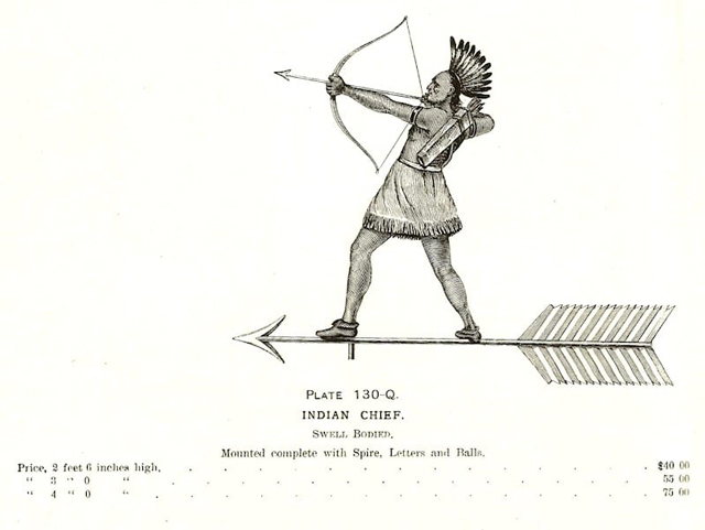 There are many stunning weathervanes in Grosse Pointe, situated on the roofs and cupolas of some of the magnificent homes in the community. Once such example is the molded copper weathervane that was once situated on the roof of 248 Provencal – 5ft tall, a rare and elegant figure of an Indian chief hoisting a bow. It was reported “when the piece was auctioned on October 6, 2006, at Sotheby’s in New York it was estimated that it would bring up to $150,000.” In the end it sold for $5.84, allegedly to Jerry Lauren, executive vice president of men’s designs at Polo Ralph Lauren Corporation. Image courtesy of: ferroweathervanes.com.